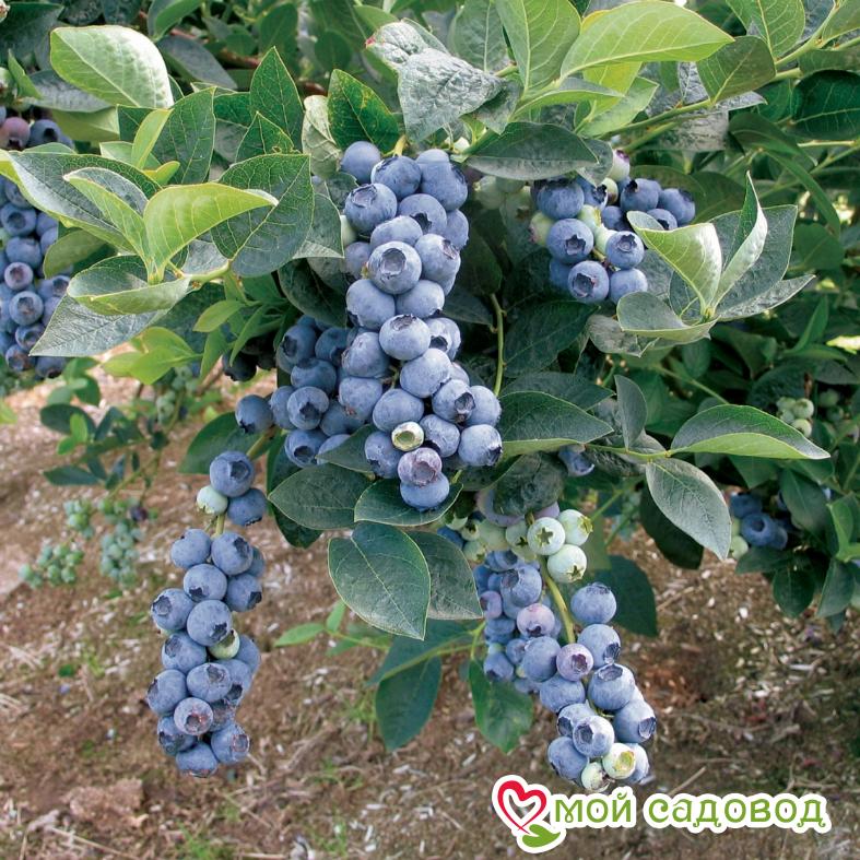 ☀️ Высаживать саженцы голубики с закрытой корневой системой можно на протяжении всего вегетационного периода (весна-лето-осень). Посадку голубики весной в открытый грунт следует проводить после исчезновения угрозы возвратных заморозков, когда воздух прогреется до 10-15⁰С, но до распускания почек (в апреле-мае). Таким образом, саженец будет иметь достаточно времени, чтобы укорениться и адаптироваться к новым условиям. Осенью к посадочным работам приступают в конце сентября-начале октября.. после того, как растение закончит вегетацию и останется без листьев. При этом оно будет иметь в своем распоряжении 3-4 недели до устойчивых морозов для укоренения. Голубика Блюголд — ягоды голубики этого популярного сорта светло-синие, с плотной ароматной мякотью. Да и сами кустики пышные и красивые, поэтому станут прекрасным украшением любого сада. Однако стоит учесть, что раскидистость – это одновременно и недостаток кустов этого сорта, ведь они требуют сильной обрезки. Блюголд – ранний сорт. Плоды приобретают насыщенный цвет еще в начале лета и дружно созревают к середине июля. С одного куста собирают от 4,5 кг ягод даже в не самые урожайные годы. Эта голубика стойко выдерживает морозы до –35°С, поэтому подходит для выращивания в северных регионах. Слабая сторона сорта – его ягоды быстро завяливаются, мумифицируются, особенно если лето стоит жаркое. ПОСАДКА Перед посадкой полейте растение в контейнере и дайте ему постоять, чтобы можно было легко вынуть саженец из контейнера не повредив корневую систему. Подготовьте посадочную яму глубиной и шириной примерно 0,5 м. Добавьте в неё кислую песчано-земляную смесь (лучше если это будет специализированный грунт с повышенной кислотностью рН) и перемешайте с почвой, вынутой из ямки. Можно улучшить структуру почвы, добавив кислого торфа. Посадите растение так, чтобы оно оказалось на несколько сантиметров ниже, чем оно сидело в горшке. Слегка уплотните землю вокруг саженца и еще раз полейте как следует. Для предотвращения испарения влаги покройте почву слоем мульчи (опилки, кора) толщиной 5-8 см. Это позволит решить и ещё ряд проблем. Во-первых, слой мульчи позволит избавиться от сорняков, во-вторых, отрегулирует водно-воздушный и температурный режим верхнего слоя почвы (т.е. почва не пересыхает и не перегревается), в третьих, он улучшит освещённость куста, в четвёртых, поможет бороться с болезнями.